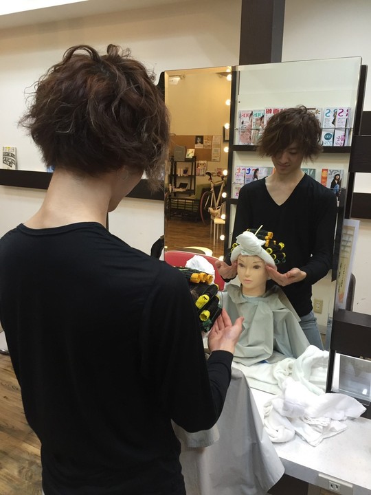 サロンワークの傍ら営業中にモデルさんを呼んで本番さながらにカットやカラーを練習していきます。