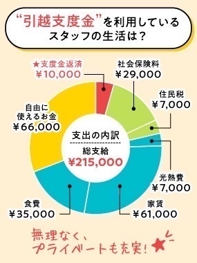 引越し資金や生活の不安を解消するために、支度金として20万を用意。